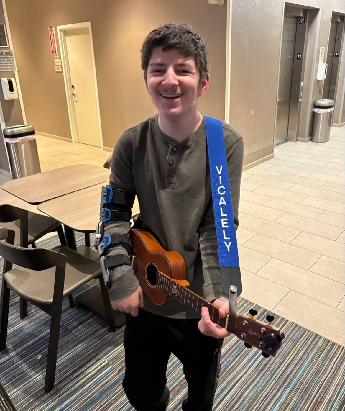 I am a Ukulele and Viola player from Ann Arbor Michigan and was born in Kazakhstan in 2005. I have one younger brother and sometimes he and I do not get along. He was born in 2008 in the same country as me but in a different city and he likes sports and video games which is the complete opposite of what I like, which is music. My music career started with the violin when I was 5 and switched to the viola in middle school because there were not enough viola players in our orchestra. Then in 2013 I bought my first ukulele from a music store in Ann Arbor Michigan called Oz's Music. Then a friend of my brother's dad asked me if I wanted to join the Ann Arbor ukulele club called the Tree Town Ukes and I said yes and loved it ever since. Then in 2020 when we shut down because of Covid 19 I was just finishing 8th grade and had to start doing school online. Then in my 9th grade year we had to still do school online but we had zoom classes with our teachers. Next thing I thought about what would be a fun thing to do with music online and that got me to start doing monthly ukulele livestream jams and concerts on my YouTube channel and sometimes had people join but not every month. Then in 2022 I was in 10th grade and started going to a teen place in downtown Ann Arbor Michigan called the Neutral Zone and have learned to use a loop pedal and preformed at a lot of events there including some of the open mics and am working on adding the other instruments to my original song and hope to record it in the studio they have at the Neutral Zone. Then in January of 2023 I had submitted a video audition of my original song for the Detroit Youth Choir and got an email saying they wanted me to come for an in person audition and did and got in and started rehearsals twice a week learning the singing and choreography for the spring show. It was a lot of fun but after about 6 months they asked me to start working on my dancing and that’s when I decided to quit the group and move on. It was a big decision but I’m so glad I tried it and could focus on fishing high school. Then the year after that I got a chance to record my first original song in the studio at the Neutral Zone and is now on Spotify. In the spring of 2024, I had my graduation high school ceremony at the Eastern Michigan University which is where I’m at now and will be for the next 4 years. I am now at Eastern Michigan University studying music therapy, in the university orchestra, learning the piano, hanging out with my new friends I met in my first school year of college. I'm also excited I started my first band with 4 friends were called Vicalely & The Non Music Majors. I hope to do and get more opportunities to perform and do great things in my near future.